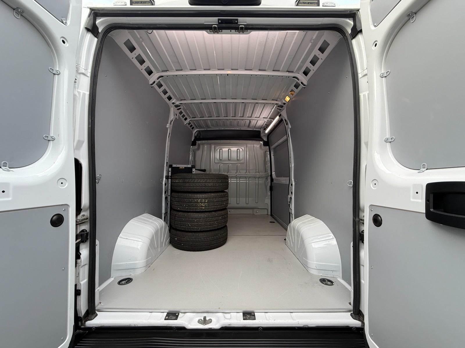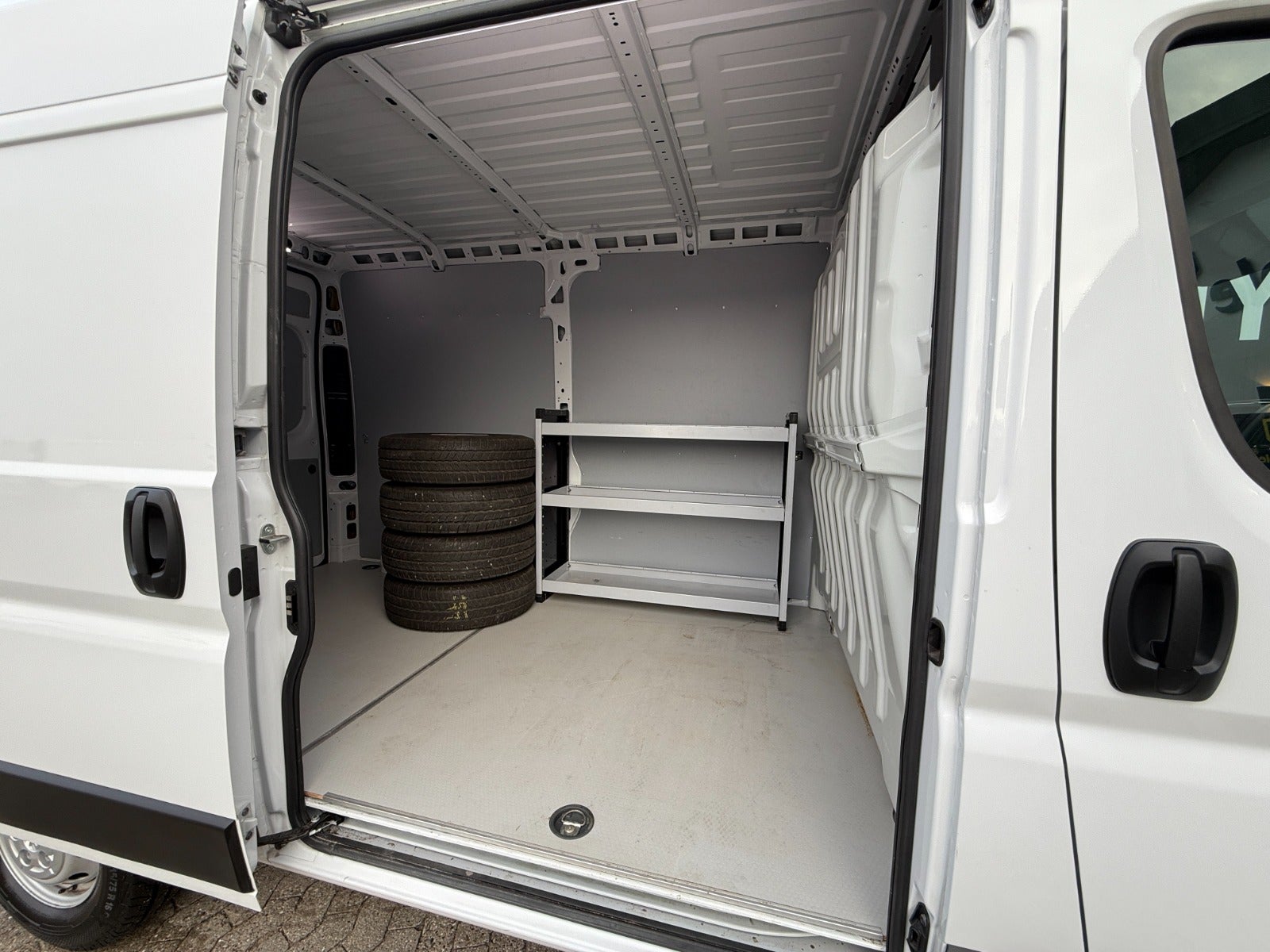 Bilen er udstyret med anhængertræk til 3.000 kg, reoler og bund i varerum, trinbræt, ekstra baklys, blitz, og ekstra hjulsæt, alt sammen klar til professionelt brug.